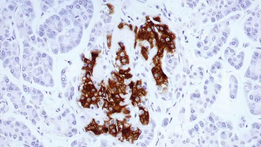 Relatos de investigação imuno-citoquímica revelam a presença de insulina no citoplasma de certos tumores de ilhotas.